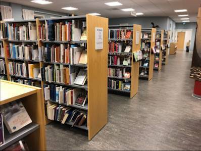 Biblioteket har en bred samling av böcker, med fokus på författare och genre som är populära i Sverige